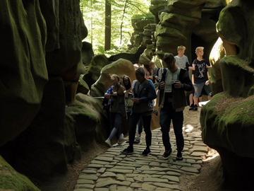 Universum der Ewigen Geschichte. Bei der Suche nach Menschen außerhalb der Großstädte erzeugte er eine kleine Welt im Wald.