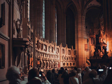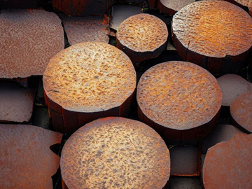 Mittlerweile schon historisch: vorne „Stadtgespräch” von Sieglinde Meythaler, hinten eine der Pinnadeln von Isi Kunath. Beide Kunstwerk wurden 2002 zum 1000-jährigen Stadtjubiläum aufgestellt und liegen (die Pinnadeln teilweise) heute im Schunckschen Garten an Burgberg.